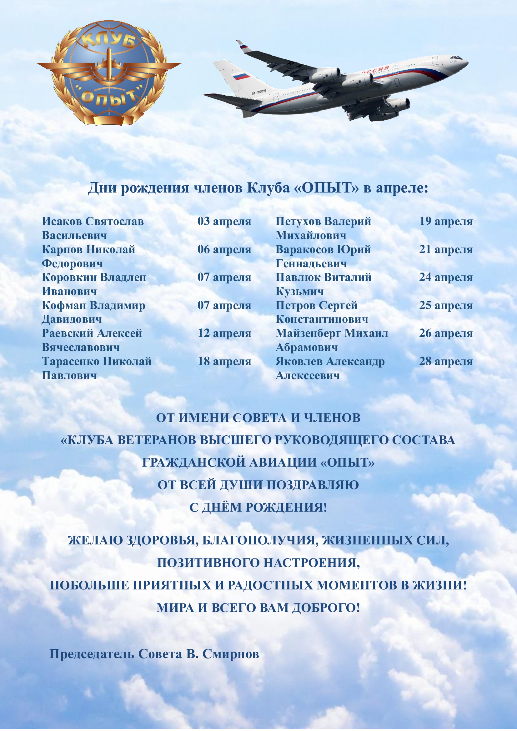 Дни рождения членов Клуба «ОПЫТ» в апреле3 апреля 2026 14:48