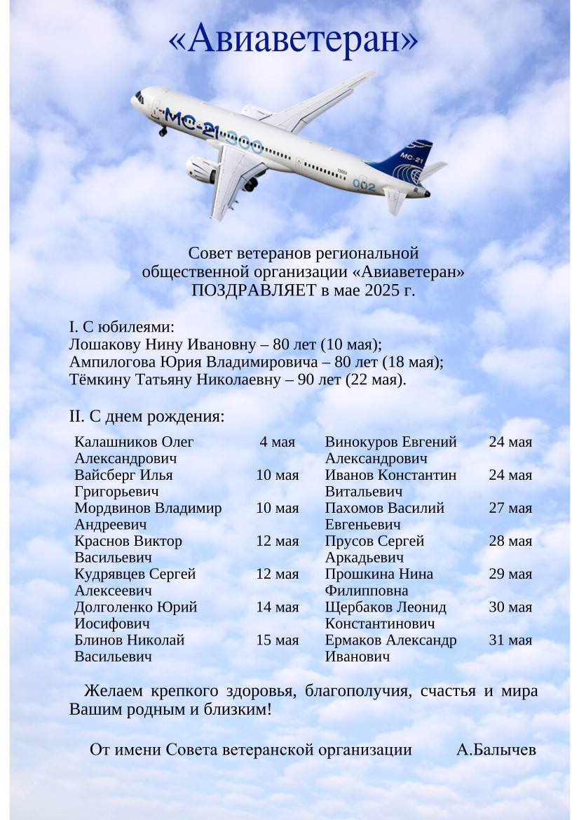 Дни рождения членов организации в мае30 апреля 2025 11:43 |