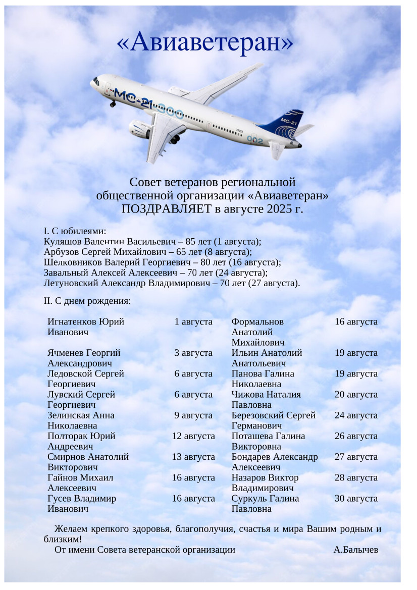 Дни рождения членов организации в августе4 августа 2025 16:38 |