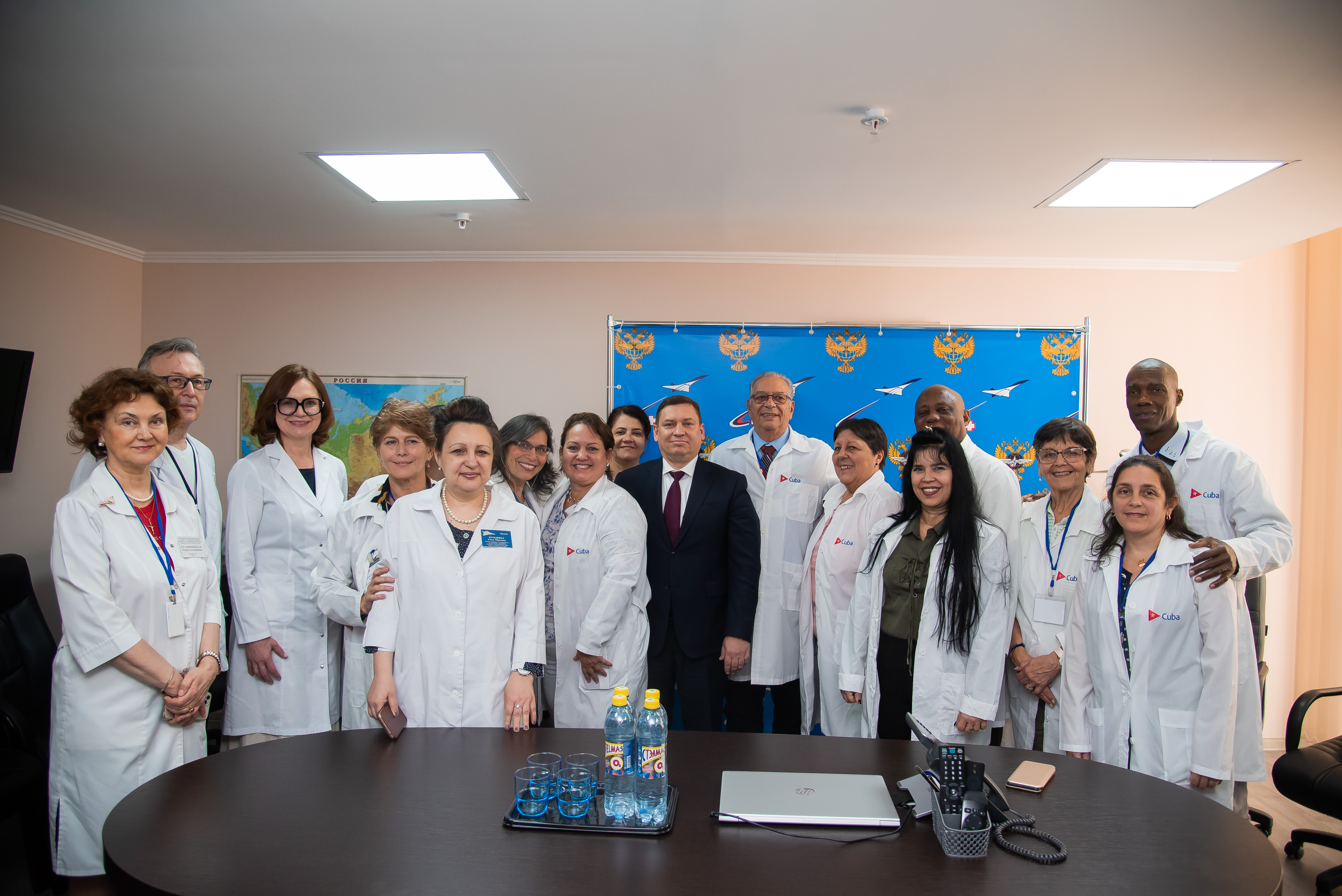 Сергей Страмоус обсудил вопросы сотрудничества в авиамедицине на базе ЦКБ ГА3 апреля 2025 18:00 Подведомственная Росавиации Центральная клиническая больница гражданской авиации (ЦКБ ГА) стала площадкой для обмена опытом между Россией и Кубой в области медицинского обеспечения безопасности полетов на воздушном транспорте. Заместитель руководителя агентства Сергей Страмоус на встрече с директором медцентра Института гражданской авиации Республики Куба Гонсалесом Мартинесом Пабло Максимилиано и его коллегами обсудил вопросы организации медпомощи авиаперсоналу и совместную научную деятельность. Заместитель руководителя Росавиации Сергей Страмоус (в центре) отметил значимость обмена опытом по вопросам авиамедицины между странами «Безопасность полетов напрямую зависит от здоровья летного состава. Поэтому здоровье пилотов — наша ключевая задача, которой мы постоянно занимаемся для продления их профессиональной карьеры. Обмен опытом в этой области крайне важен как для России, так и для Кубы», — подчеркнул Сергей Страмоус, курирующий вопросы безопасности полетов, летной эксплуатации и подготовки авиационного персонала гражданской авиации России. В рамках давних дружественных отношений между Россией и Кубой кубинские врачи уже более 35 лет регулярно повышают квалификацию на кафедре авиационной медицины Российской медицинской академии непрерывного профессионального образования (РМАНПО). Сейчас на базе ЦКБ ГА они повышают квалификацию и изучают: