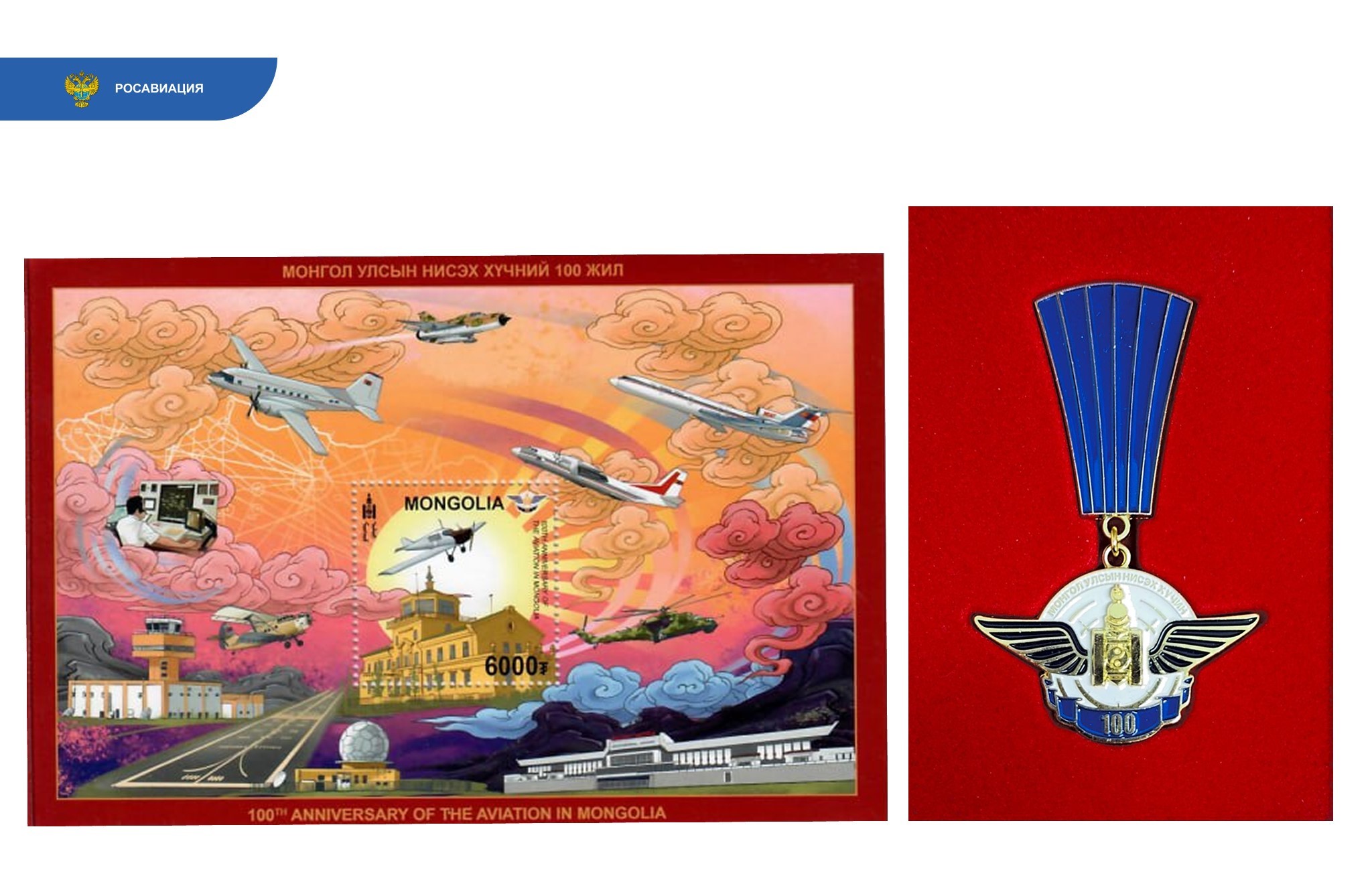 «Турпоток между Россией и Монголией уверенно растет. Развитие авиаперевозок будет способствовать дальнейшему укреплению нашего сотрудничества. Расширение географии полетов имеет важное значение для граждан обоих государств», — прокомментировал Алексей Буевич, курирующий в агентстве вопросы развития авиаперевозок. Памятная открытка и медаль, посвященные 100-летию авиации Монголии