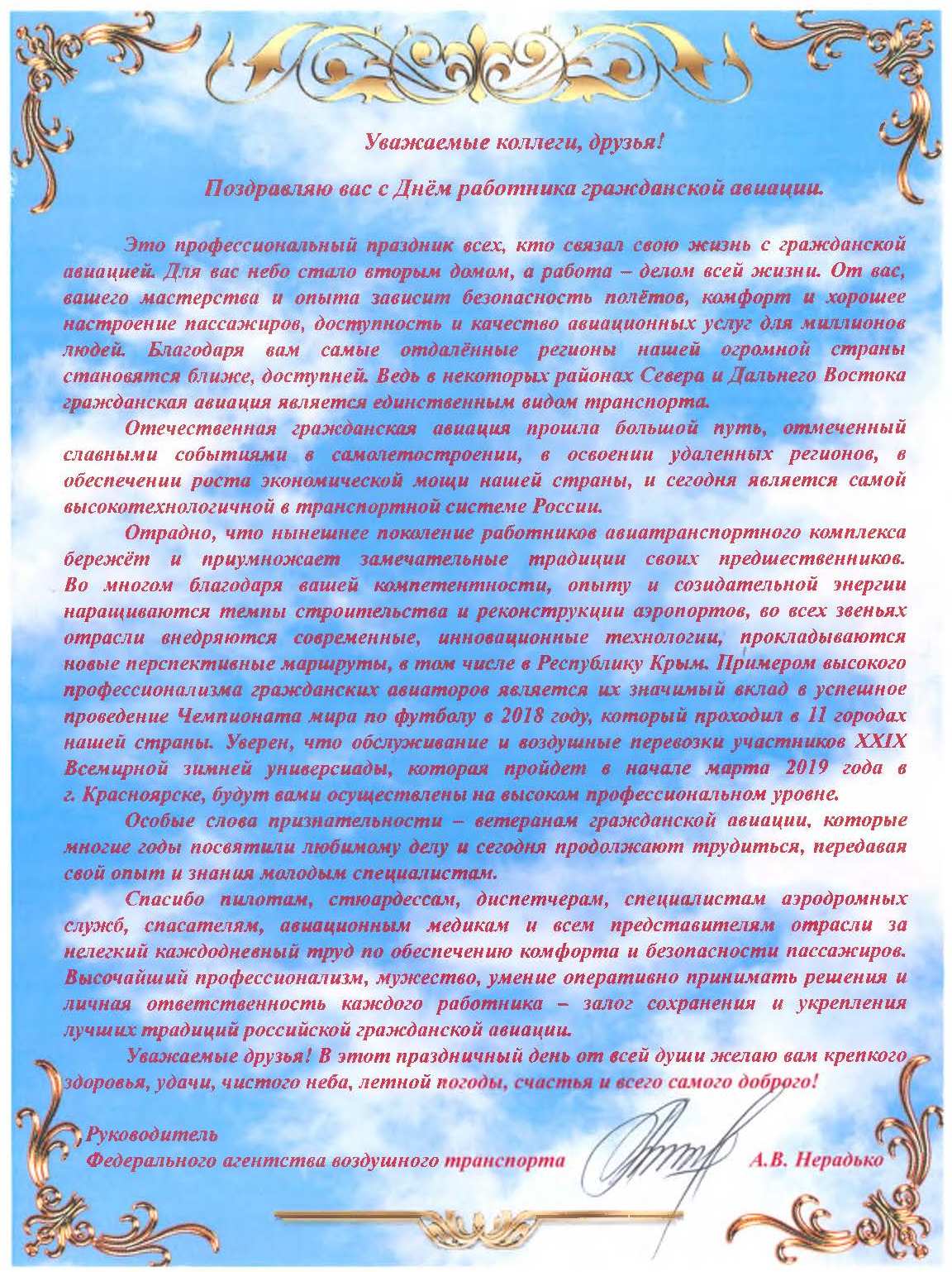 Поздравление руководителя Росавиации Александра Нерадько с Днём работника гражданской авиации9 февраля 2019 11:43 ![]() ![]() |